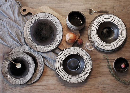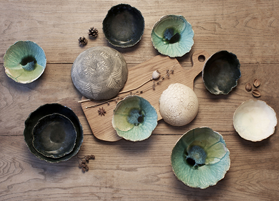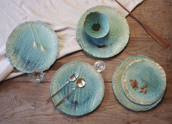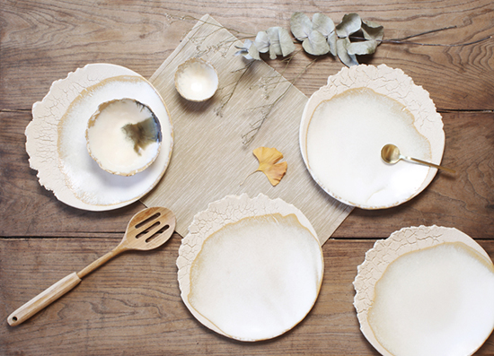 Elle réalise également des collections d'assiettes, coupes, mugs pour les restaurants gastronomiques sur commande.
